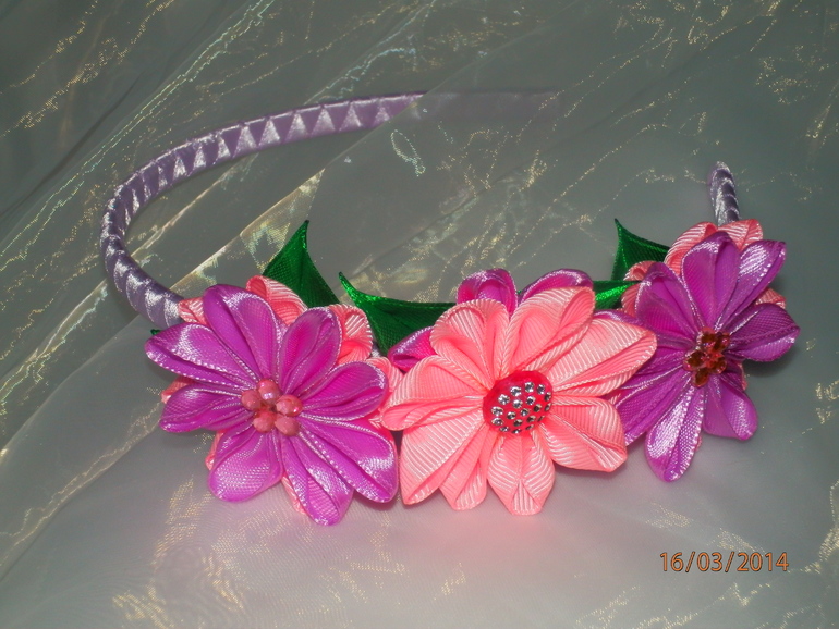 Канзаши.Решила я снова возвращаться в любимым цветочкам))Сейчас буду активно учиться,совершенствовать,так сказать,свои навыки,буду продавать свои работы,а то складывать не куда уже))Остатки из прошлого: Все ободки по 130 рублей!