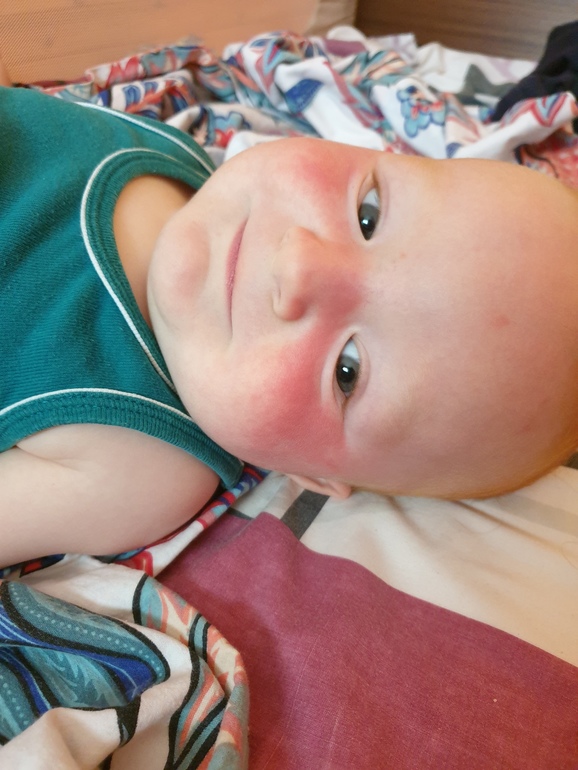 Девочки аллегрией не страдали, я кушала все, скушали ну не мало земляники, мажу мазью и даю препарат, не помогает. Может это солнце уже носик зацепило. .