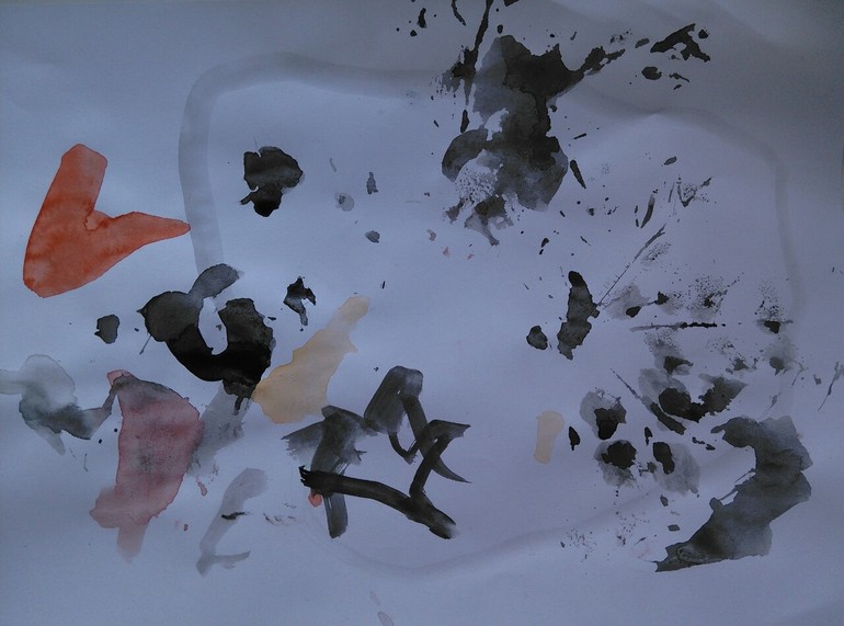 А это егоротворение. Просила раскрасить сухой кленовый лист, так он сначала обрисовала его силуэт, потом наставил клякс, а уж потом на клеенке раскрасил листик и приложил его... к клеенке. А уж потом... я приложила к белому листу. Поэтому не столь отчетливый отпечаток. Ну и ладно...