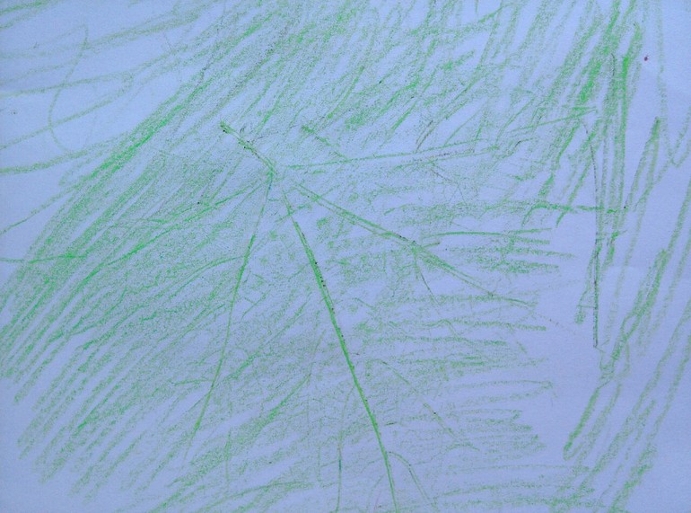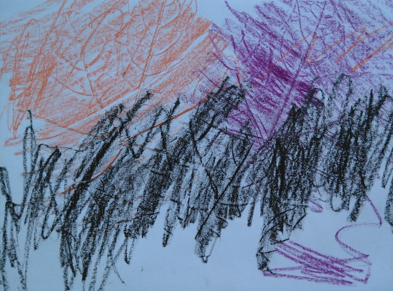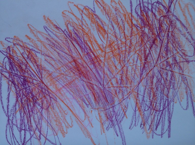 Ну а дальше мы порисовали восковыми мелками прожилки листьев.