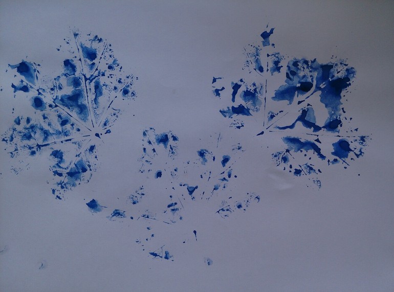 А это надюшкины снежинки. Уж больно не осенняя синяя краска)) Хотя с другой стороны... Следы похожи и на разводы на стекле от дождя))