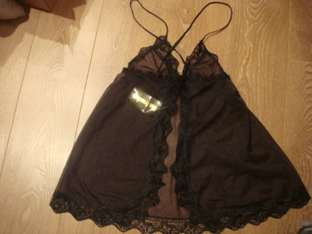 7. Пеньюар+ трусики новые. на р-р 44-46, грудь 2 размера, трусы-стинги на завязках, верх завязывается на груди, сзади резинка, лямки регулируются. Экв.400
