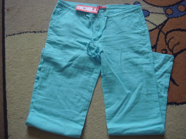 Новые льняные брюки цвета морской волны, очень красивые. Размер 50 XL, маломерки на ОБ 100, талия регулируется поясом, посадка никая 21 см. 1000 (1200) руб.