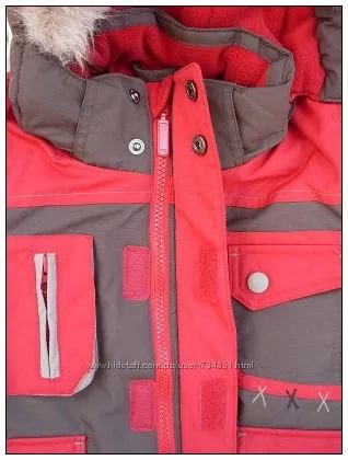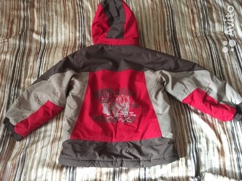 Рукава куртки и талия брюк помимо резинки регулируются липучками. Горло закрыто. По воротнику и спине мягкий флис. В отличном состоянии. На 4-6 лет.