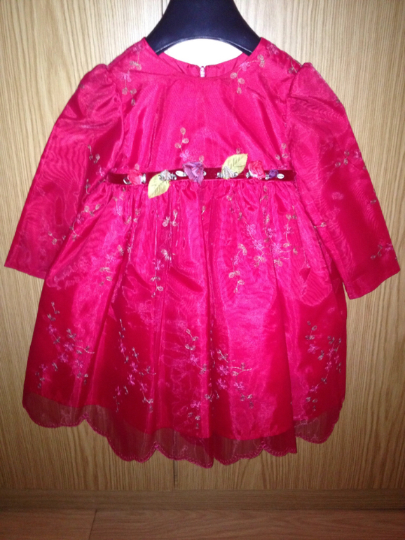 2. Американское благородно-красное платье с вышивкой и цветами на поясе от 1 года.