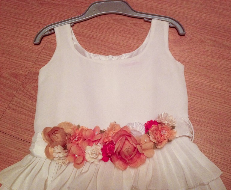 1. Элегантное платье для праздника от 3х лет. Пояс из цветов снимается. Цена 1000р.