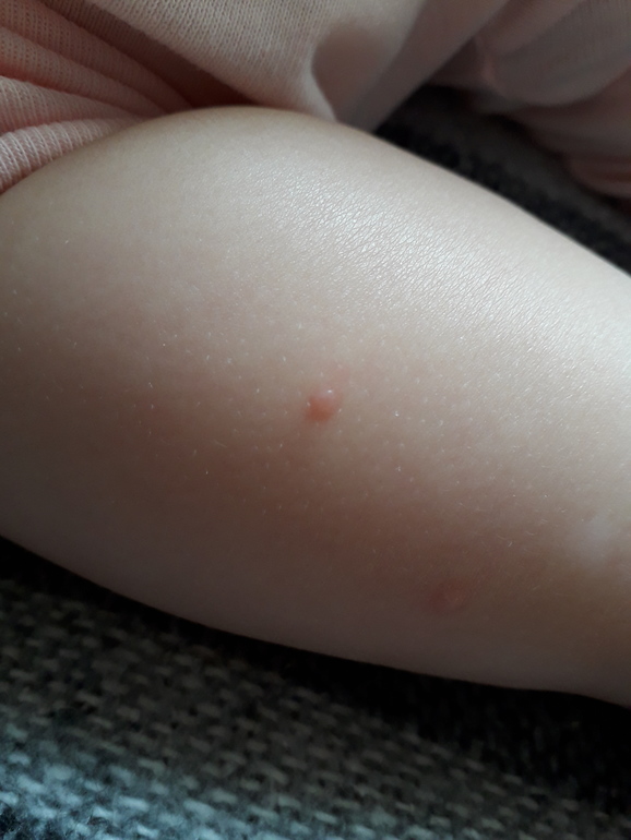 Доброго дня!Нам 8й місяці десь тиждень назад з'явилися такі прищики на ножкі у доці!Думала що покусали комарі!