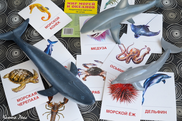 Весьма бюджетные и удобные в использовании карточки (можно брать с собой в дорогу или на прогулку). Всего- 16 карточек с изображениями самых популярных жителей морей и океанов.