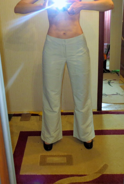 брюки коричневые из тонкого хлопка, лежали сложенные, отсюда мятый вид