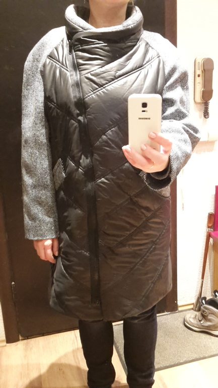 Замеры : полуобхват груди 62 см, полуобхват бедер 61 см, длина по спинке от воротника 87 см.