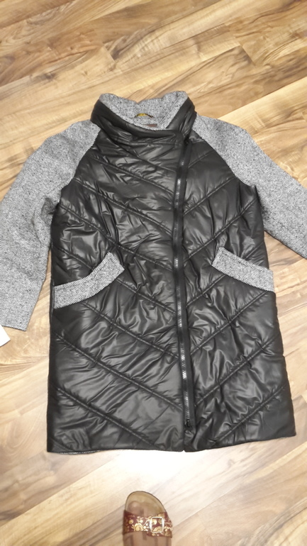 Пристрой. Пальто демисезонное Твид/Плащевка Серо-черный, размер по маркировке 48, в реальности 50-5