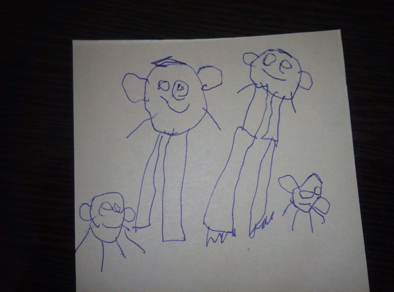 У нас такие семейные портреты Коля тоже стал недавно рисовать. Один из них папа в рамку вставил и на работе на стену повесил))). Говорит, что его он очень радует!