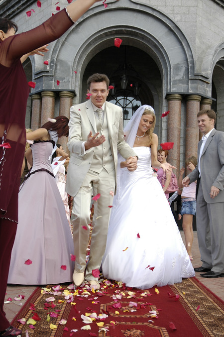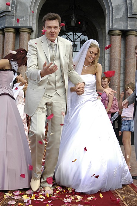 Мы венчались, регистрировались и "играли" свадьбу в один день! По совету бабушек - 1го сентября))) Платья у меня было два - тут на фото только подвенечное - белое....