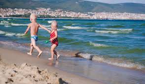 Солнечный Берег - это идеальный курорт для детского отдыха. Море у берега неглубокое,теплое и очень удобно для купания детей. Берег пологий и вход в море плавный. Море очень чистое, вода прозрачная. Поэтому на курорте Солнечный берег море законно имеет голубой флаг. Купальный сезон с июня по конец сентября и температура воды +23-25 градусов. На песке в воде у берега очень много крохотных ракушек - дети их собирают с большим удовольствием После прилива утром можно найти на песке выброшенных из морских глубин раковины рапан и небольших крабов. Дети в полном восторге, собирая их.