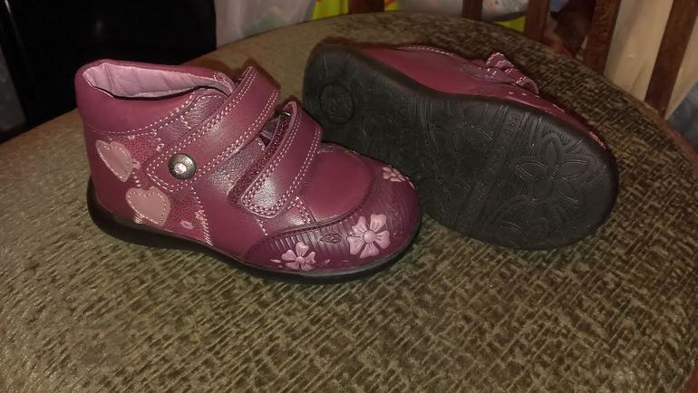 1. Bibi Kids. Кожа на коже. Made in Brazil. Размер 22 (7T), по стельке 14,3 см. Очень мягкие. Подошва легко гнется. Стелька тоже мягкая (вынимается). Цена 1100 руб.