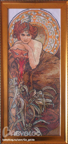 Начала вышивать в феврале-марте этого года, а сейчас в августе ровно половина. В гтовом виде работа 14,5*42,5