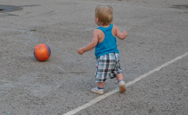 - обожаем играть в мяч, бросаем и ловим его, нравится катать коляски, любит возиться с машинками