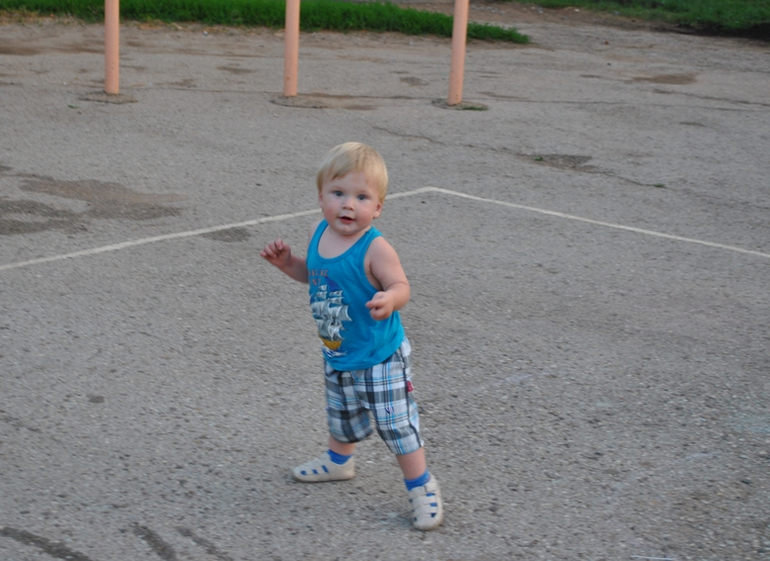 - на улице обожает везде ходить и ползать, живем мы за городом (земельный участок), так что ползем и ходим где хотим))))