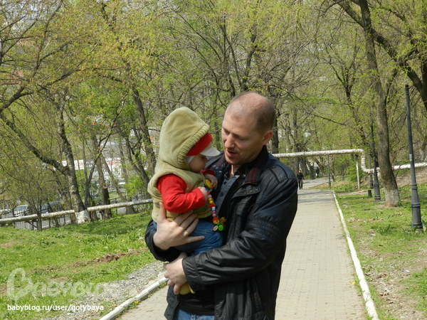 Ну а теперь о самом неприятном - насморк. Решили мы повторить нашу поездку к бабуле в Партизанск. Дорогу перенесли легче, чем в первый раз, но все-равно почти все время на руках. Утомилась страшно. Конечно у бабушки было классно - свежий воздух, клубничка, собачки, колонка. Масса впечатлений, но то ли он где-то подпотел(на улице было +26) и потом его ветерком придуло, то ли какая-то зараза в воздухе летала, но мы его словили... Причем проявился он во всей красе ночью. Мы долго спросонья не могли понять почему мелкий так плачет, а потом дошло В общем с 2 до 7 утра мы прыгали, бегали, ходили, не спали в общем. В семь пришла моя мама и забрала Миху, дав нам поспать пару часиков. На сегодня ситуация почти не изменилась, капаю гриппферон, промываю нос аквамарисом и прочищаю аспиратором. Мелкий уже ненавидит все эти процедуры. Думаю, что наши соседи считают меня тираном. Но так он хотя бы как-то дышит. Читала, что можно пользоваться детским називином для облегчения, но как-то опасаюсь. Лучше уж я не посплю пару ночей.... Гуляние пока отменила, ну и прививку вторую пришлось отложить пока не восстановится наше самочувствие. Вот на такой минорной ноте заканчиваю свой пост... Фото добавлю завтра. Сил уже нет:) Ну наконец-то мой любимый муж отдал мне карточку с фотографиями:) Прошу прощения за такую задержку:)