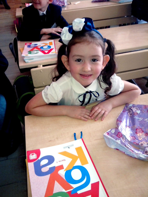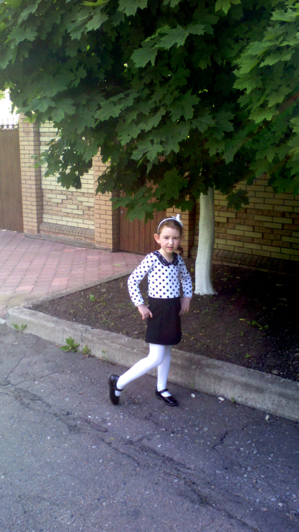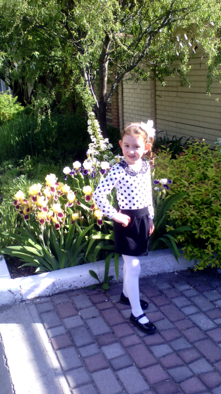 Утром сбегала за цветами, вынесла их на балкон, да там и забыла) Уже до школы доехали, вспомнили, вернулись обратно))) Утром лил дождь, да такой, что Андрей Польку от машины до школы нес на руках. Линейку сделали в спортивном зале, только для 1-х и 11-х классов, а остальных сразу рассадили по кабинетам. Поэтому я раз шесть на шпильке бегала со своего третьего этажа на первый в спортзал, чтобы хоть одним глазком посмотреть на своего ребенка))