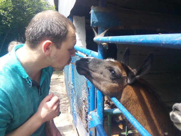 Животные все "ручные", знают, что если к ним подходят, значит дадут что-то покушать) Попугай, получив свою порцию, стал потягиваться и показывать нам свои крылья, а лама обплевала Польку чуть чуть, а потом хорошенько так "умыла" одного из наших друзей))))