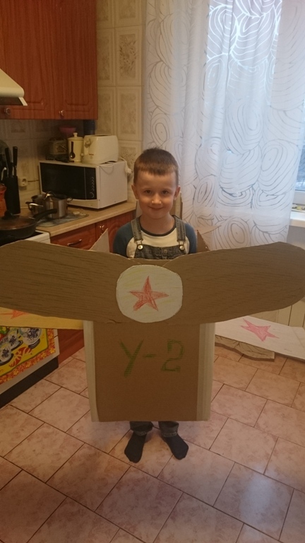 Купили мы шкафчик небольшой, картонная коробка после него осталась, почему то мне так жалко было ее выбрасывать, что решили мы сделать что-то из нее. Руку приложили все) Идея возникла и через час самолет воплотили в жизнь) Похвалюсь)))