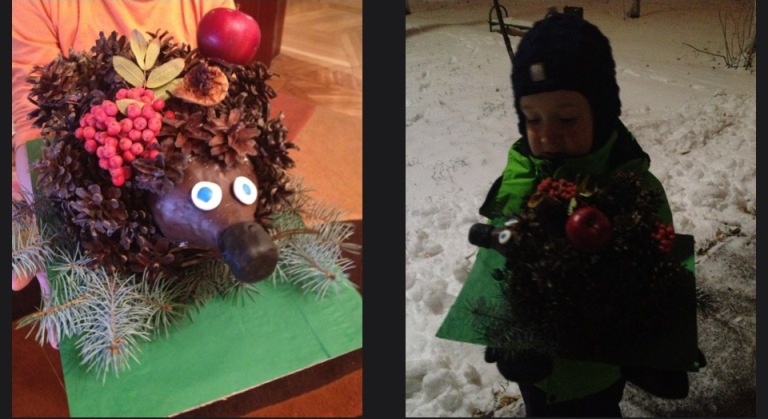 Утром сегодня отнесли в сад нашу поделку, которую делали все вместе и на одном дыхании)