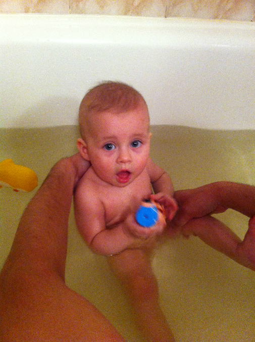 И мы кстати теперь купаемся без круга, лежать и плавать мы не хотим! Сидим в ванной, играем в игрушки) взрослые совсем!