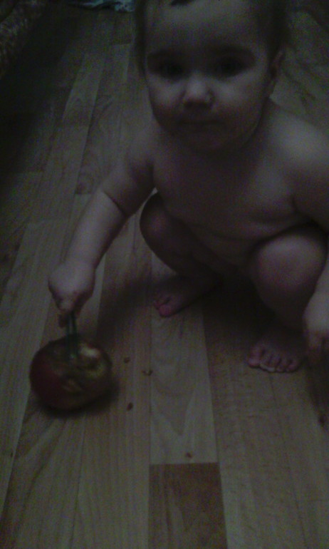 и наше первое фото, пока балуюсь:) Злесь запечатлена Алисочка с пинцетом и яблоком. Это занятие дало мне уйму свободного времени! Около часа. Она ковыряла пинцетом яблоко:)