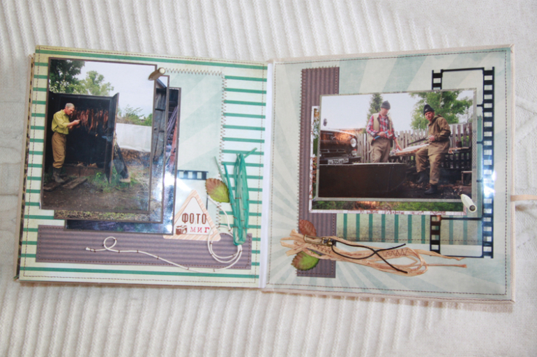 Альбом 20*20 см,мягкая обложка, ткань двунитка. Внутри около 50-ти фотографий. Сделала альбом с миним декора)))) Папе очень понравился))Весь вечер показывал мое творение гостям))))