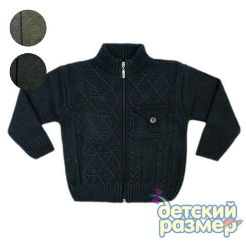 Кофта на мальчика: спереди вязаный орнамент; на молнии; карман на пуговице