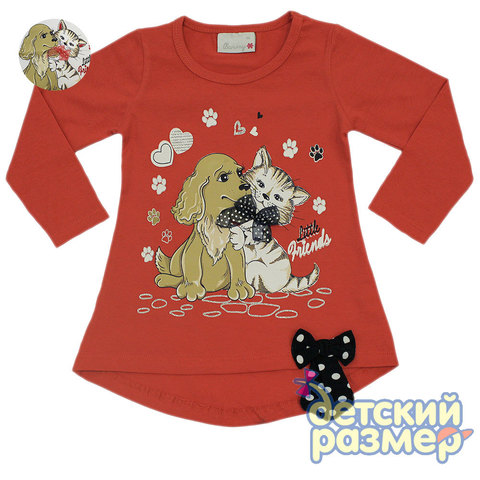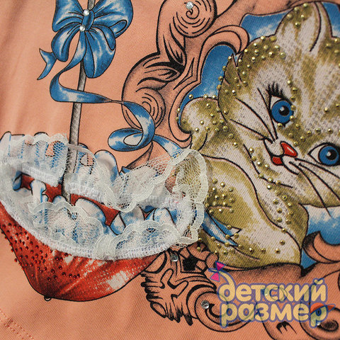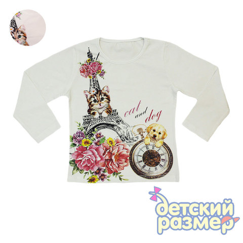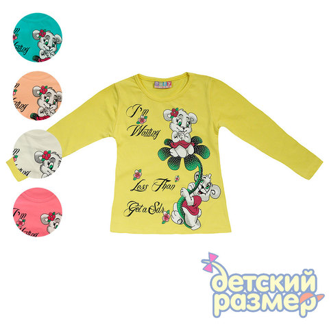 Футболка с длинным рукавом: выполнена из качественного, эластичного трикотажа; на груди милый принт украшенный стразами