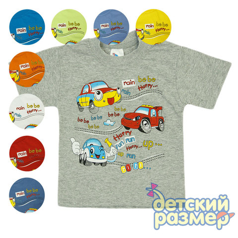 Футболка для мальчиков: приятная на ощупь ткань; спереди принт "машинки"