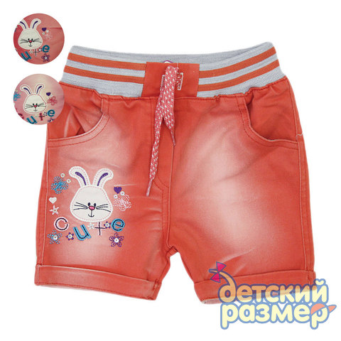 Джинсовая юбка в складку для девочки: удобный пояс на широкой, эластичной резинке; украшена декоративной вышивкой в виде сердечек