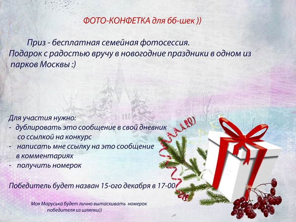 Мария (ведение бухгалтерии) → Конфетное Новенькая Спам Мама троих (15 лет, 8 лет, 6 лет) Москва Я уже наверно всем надоела, но так хочется, что бы повезло ) http://www.babyblog.ru/community/post/scrapbook/1690872