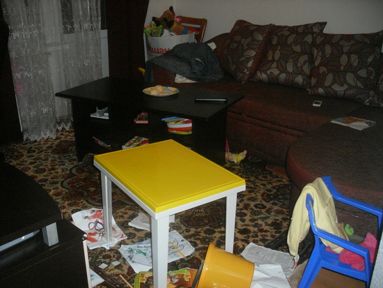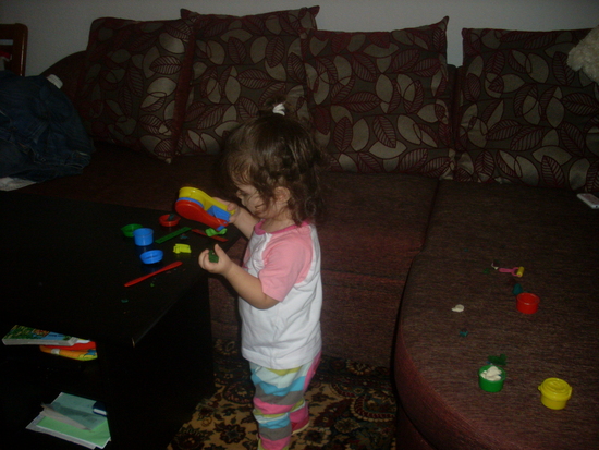 и весь пол, диван и ковер в пластилине, пришлось в срочном порядке пропылесосить пол