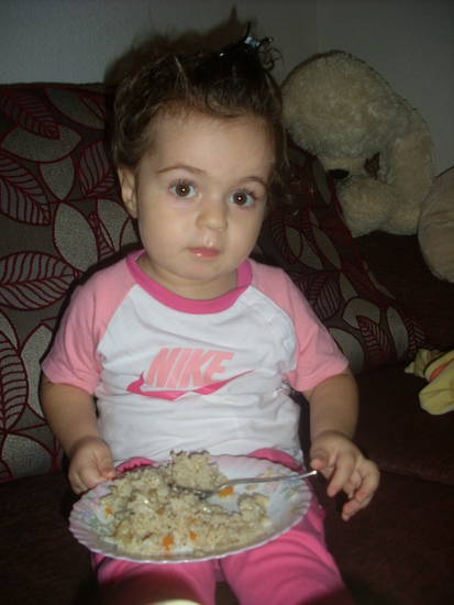 Каша готова, дите кормлено, но явно она сегодня встала не с той ноги, сильно капризничает и не хочет фоткаться, не дает вытирать ротик