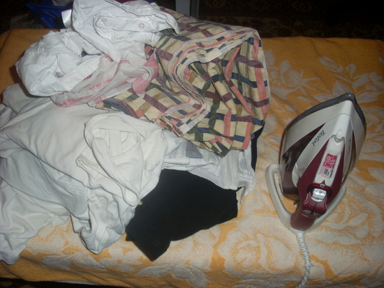 Далее меня ждет глажка. чтобы дочка не мешала, даю ей тесто для лепки. А я совмещаю глажку с приятным, а именно -общаюсь по скайпу с родными.