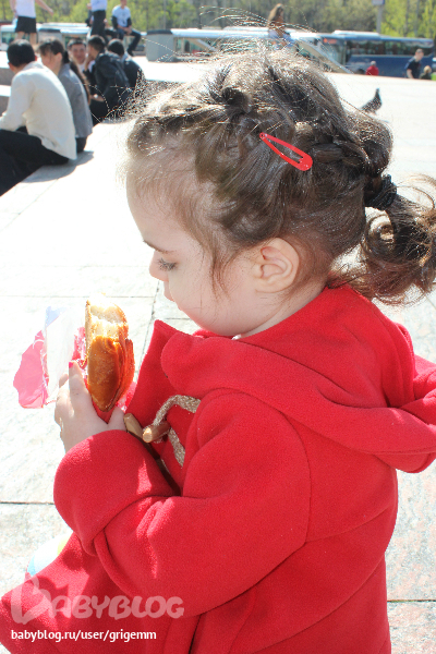 сегодня весь день провели в Эвой на улице. Рисовали на асфальте, играли в песочнице, были на церемонии открытии сезона фонтанов, долго гуляли, пускали мыльных пузырей. Пришли домой довольные, но уставшие:)