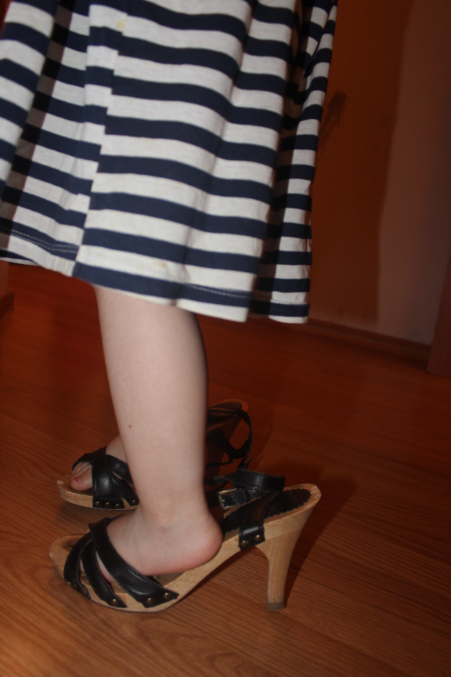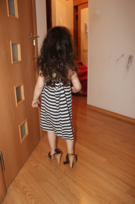 А вечером она нашла мои босоножки и нацепила на себя мою кофточку в качестве платья. Весь вечер ходила в таком виде, а ночью, когда муж пришел домой, она его остановила на пороге и из комнаты медленно пошла к нему, продемонстрировав свой новый образ))))