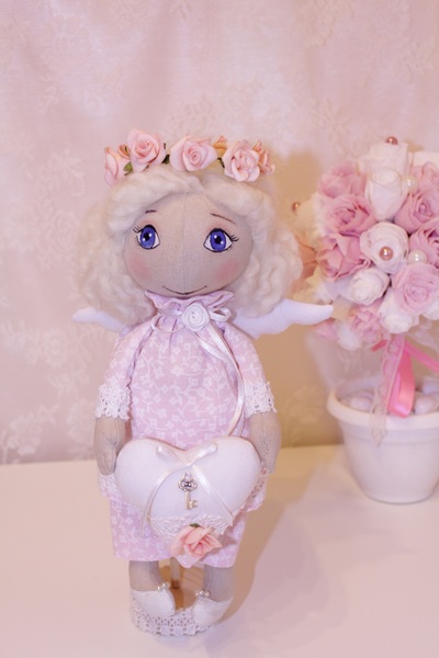этот ангел был сшит в подарок одному человеку, который сильно болен, но не теряет надежду на выздоровление, мешок ангела не пуст, он полон здоровья, набит записками с пожеланиями о скорейшем выздоровлении.