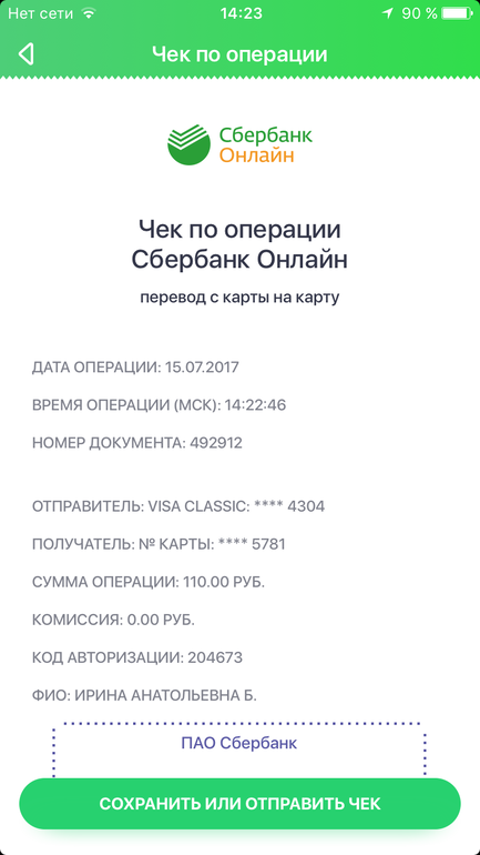 Сбербанк Б. Ирина Анатольевна 4276 8381 9196 5781