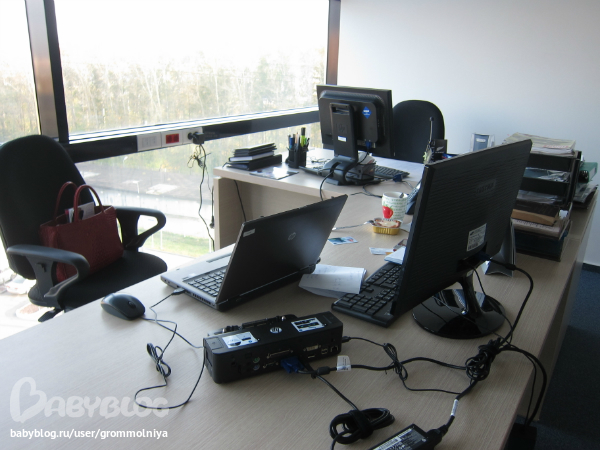 РабочееМое рабочее место...только вчера переехали в отдельный кабинет...я сижу с двумя Дмитриями...как-нить их зафотаю))) - пока один в командировке, второй на совещании..фотик благополучно сдох..но успела сделать пару кадров с утра...