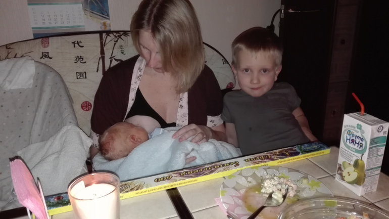 в час я уже легла обратно спать с Димоном в обнимку, в два вроде муж присоединился спать, т.к. он был с ночной смены...