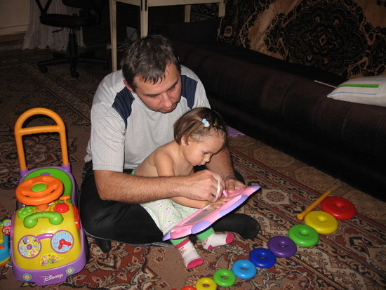 А Анюта с папой похожи очень)..даже непонятно, кому интересней)))))