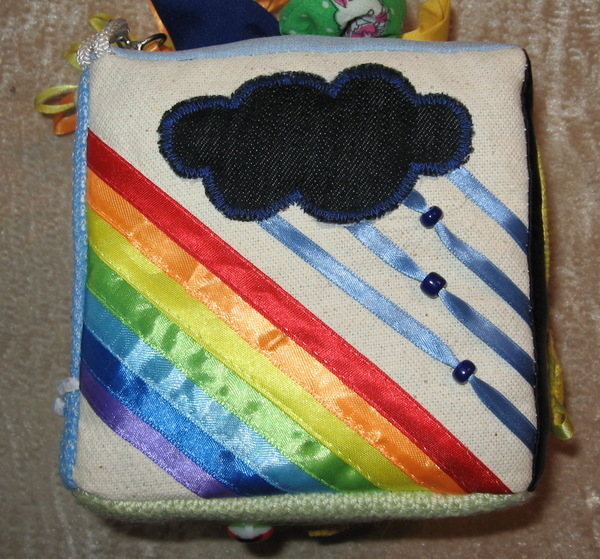 2 сторона. Радуга (изучаем цвета), тучка и "дождик" (бусины двигаются вверх-вниз)
