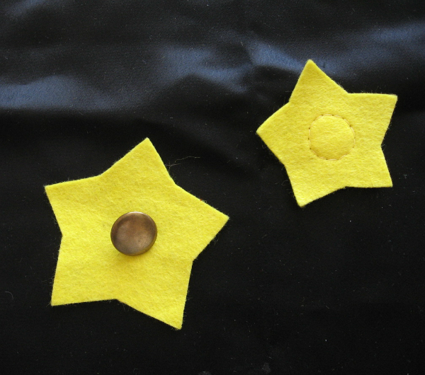 Просто металлическая пуговица (звездочка будет пристегиваться на пуговичку)