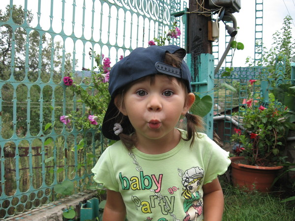 Этим летом у Ани был девиз "Без шапки - никуда!". Уехали в город без панамки, Аня переживала, что шапочки нет - но выход был и нашлась бейсболка : )))