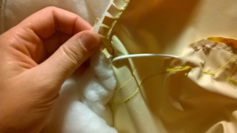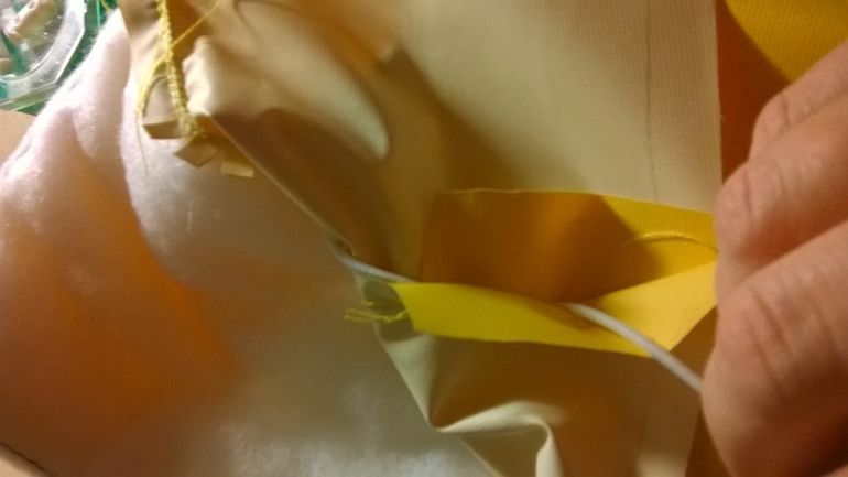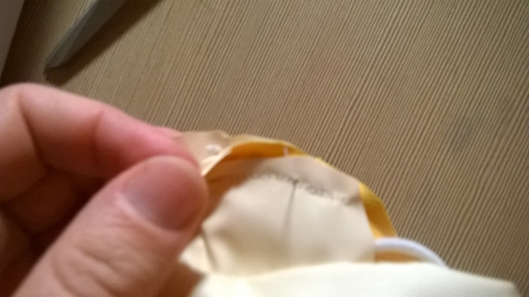 чтоб не было толсто сперва беру маленький кусочек ткани, резинку между вкладываю и частыми стежками соединяю этот бутерброд, в итоге в отделочный шов толстого не попадет, будет только слой ткани, а резинка при этом намертво сидит внутри, надеюсь понятно написала )))