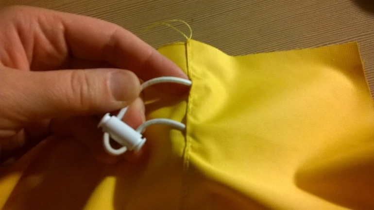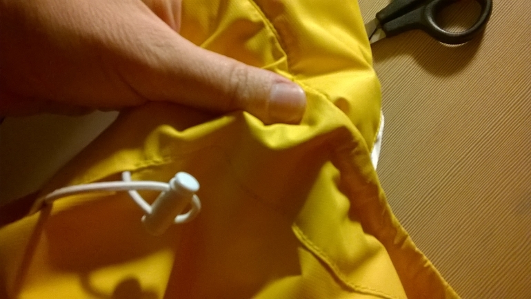 регулировка внутренняя и внешняя отдельно на одной общей длинной резинке, люверсы на подбортах , резинка выведена внутри куртки для регулирования, видела выводят наружу тогда не резинку вставляют а тесьму или шнурок